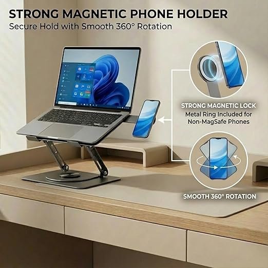 Premium Adjustable Metal Laptop Stand with Magnetic Phone Holder