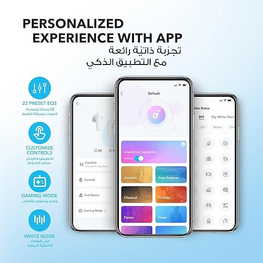 Fine-tune your audio experience via the Soundcore app, with 22 preset EQ modes to match your mood and music genre.