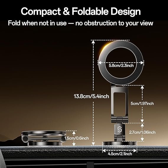 Enhance your driving experience with the Syncwire MagSafe Magnetic Car Mount, engineered for maximum stability, flexibility, and premium performance. Built with a full all-metal body, this mount delivers exceptional durability and a powerful magnetic grip that keeps your phone securely in place, even on rough or uneven roads.